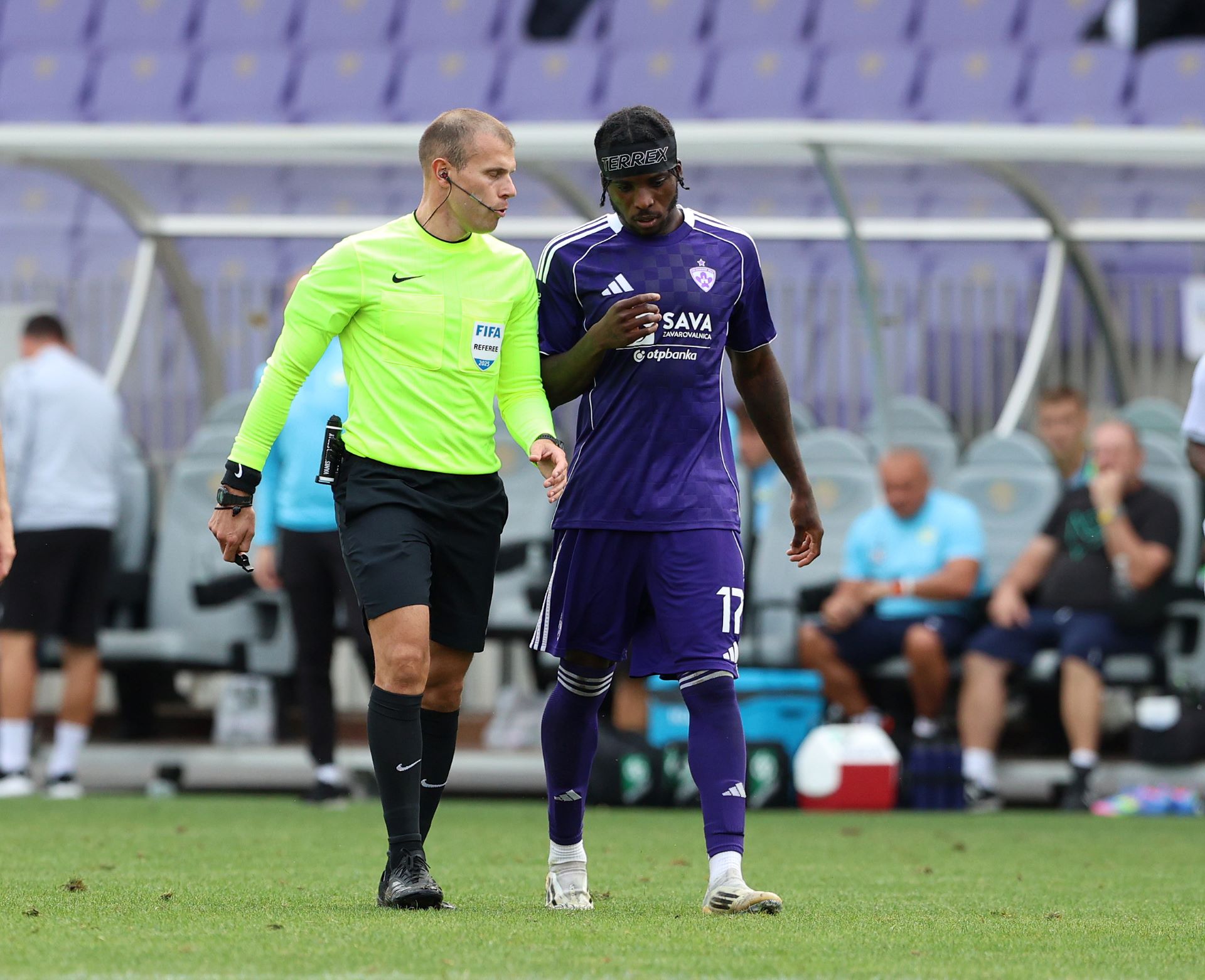 Ob sodniku iz slovenske Istre bosta ob vzdolžnih črtah na stadionu ob Kamniški Bistrici (kapaciteta 2.500 gledalcev) še pomočnika sodnika Tomaž Klančnik in Žiga Knafelc, četrta sodnica bo Aleksandra Česen, v VOR sobi pa bosta s tehnologijo upravljala video sodnika Denis Šabanagić in Žan Jazbec.