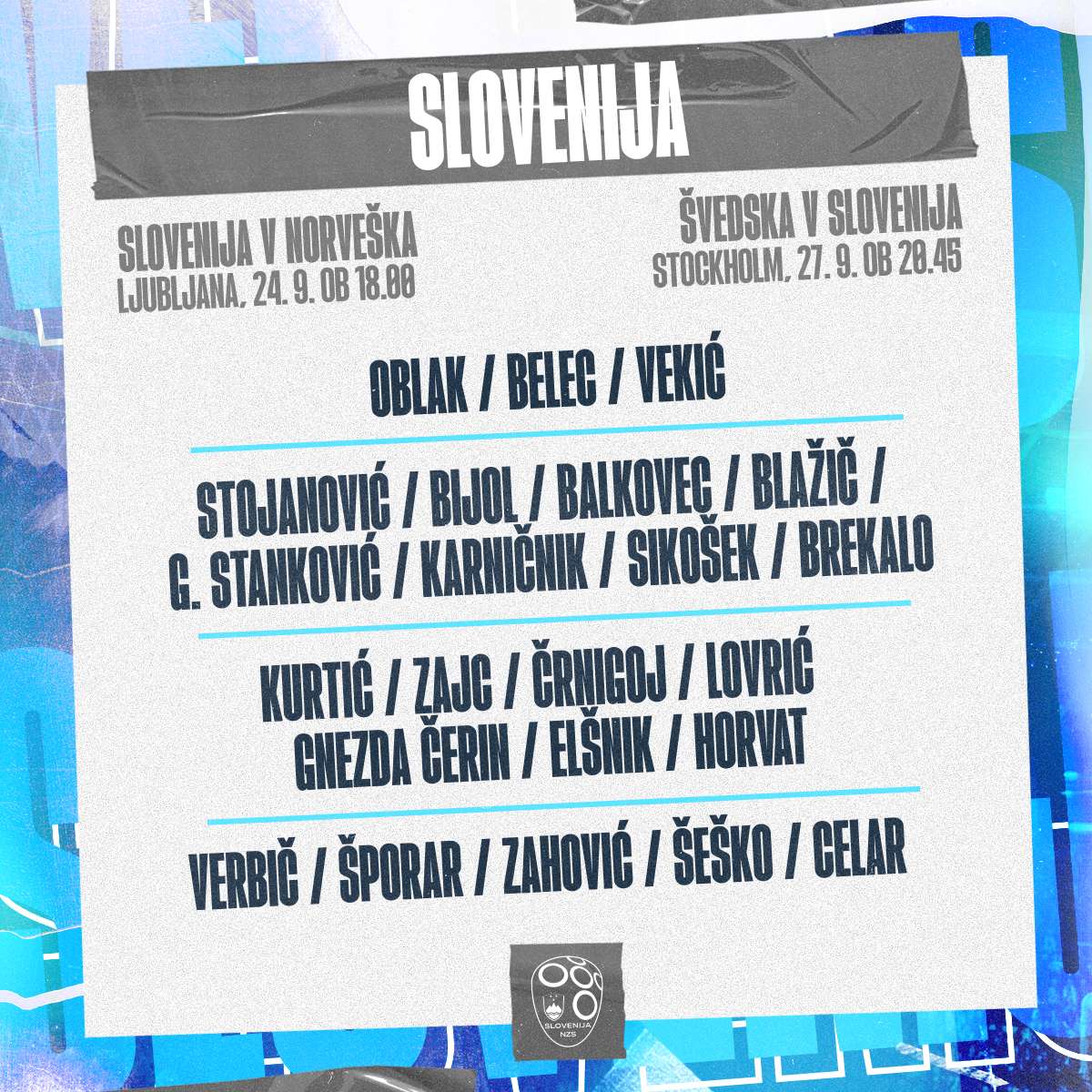 Slovenski selektor Matjaž Kek je na današnji novinarski konferenci v Nacionalnem nogometnem centru Brdo predstavil seznam reprezentantov za kvalifikacijski tekmi z Norveško in Švedsko.