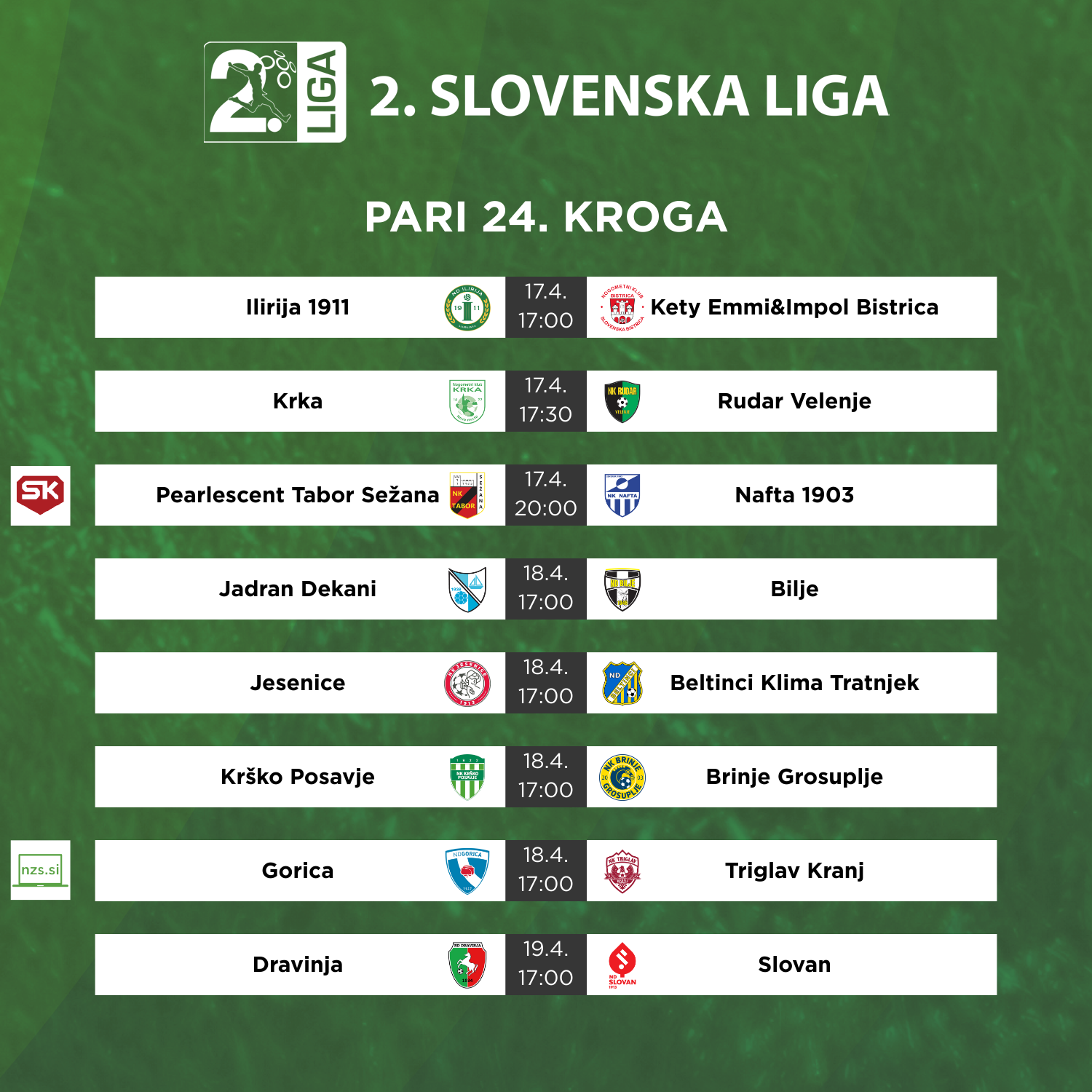 Zastor nad 24. krogom bo padel po nedeljski tekmi Dravinje in Slovana. Kdo bo boljši v spopadu ekip, ki precej nihata v svojih rezultatih? Konjičani so po treh tekmah brez poraza - zmagi proti Biljam sta sledila remija proti Beltinčanom in Grosupeljčanom - tesno izgubili s Triglavom, Slovan pa v dvoboju s Krko ni uspel izkoristiti številčne premoči. Novomeščani so tekmo zaključili z dvema igralcema manj, kljub temu pa so z devetirico na igrišču prišli do vodstva z 1:2. Zagotovo skeleč poraz Slovana je z golom v četrti minuti sodniškega dodatka preprečil Mark Šerbec. Je lahko Luka Žinko zadovoljen tudi s točko? Ljubljančani so zamudili priložnost, da bi se z zmago še bolj odmaknili od začelja lestvice, v kateri še naprej vztraja Dravinja. Trinajsti Konjičani predzadnjim Jeseničanom bežijo za pet točk, še dodatne tri točke zaostaja zadnja Gorica.