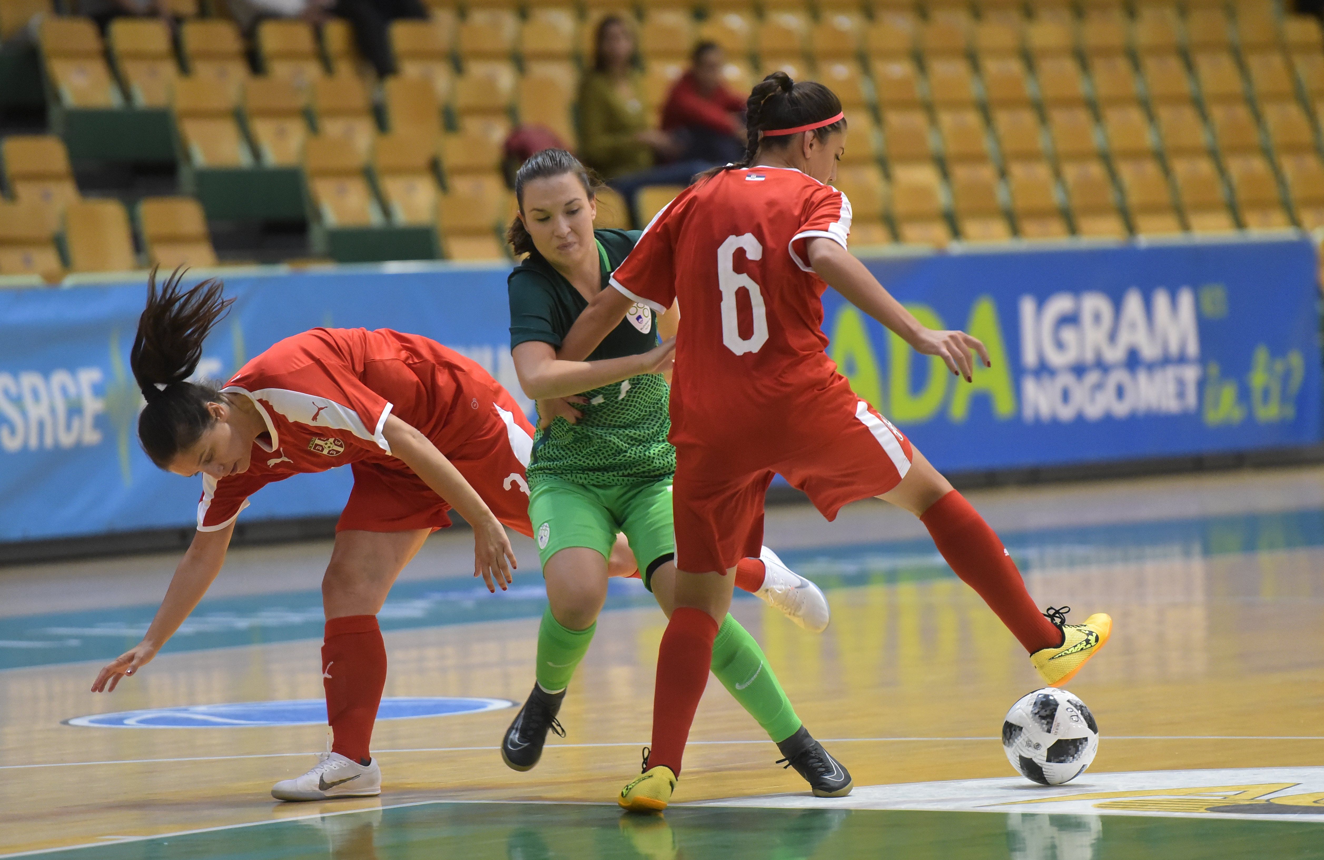 Na drugi strani se je izkazala vratarka Valentina Tuš (dobro je posredovala tudi v 6. in 7. minuti prvega polčasa, ko je ukrotila poizkuse Adrijane Trišić in Jovane Stojanović), Mateja Vojsk pa je uspela v 38. minuti prekiniti nevaren protinapad Srbije.