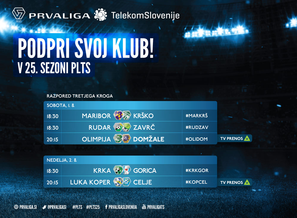 V 3. krogu Prve lige Telekom Slovenije z zanimanjem pričakujemo obračun med Mariborom in Krškim, ki se odpravlja v Ljudski vrt s prvega mesta na prvenstveni lestvici. Zelo vroče bo tudi v Stožicah, kjer bo na vrsti osrednjeslovenski derbi, medtem ko bomo na Bonifiki spremljali reprizo zadnjega finala pokalnega tekmovanja.