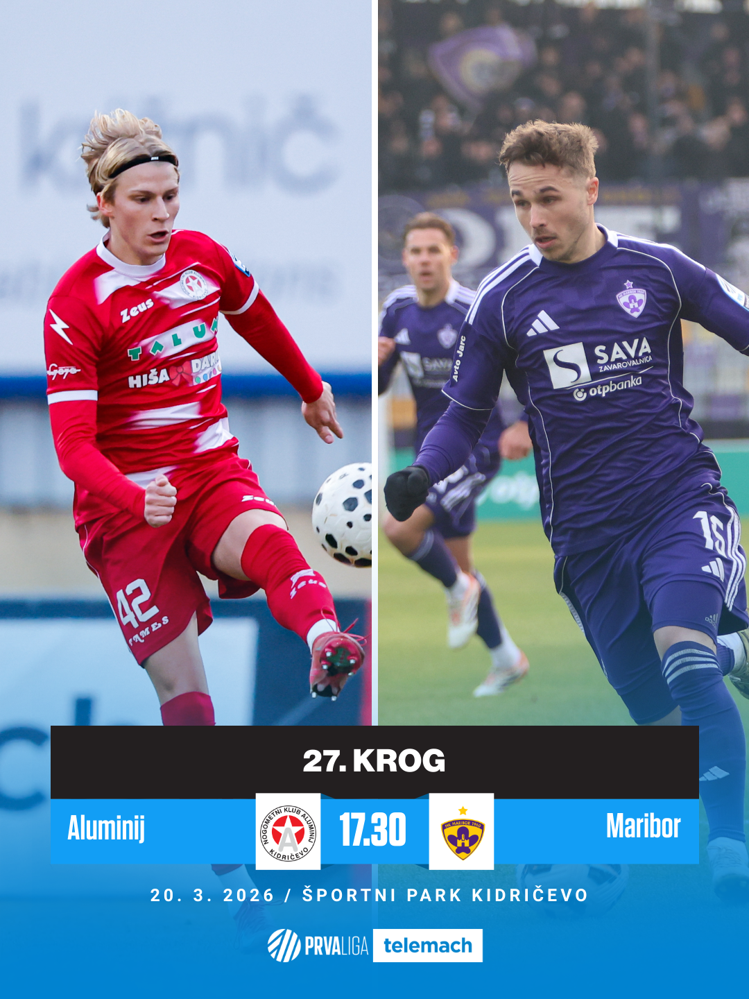 Zadnji krog tretje četrtine Prve lige Telemach bosta s štajerskim obračunom odprla Aluminij in Maribor. Kdo bo dobil dvoboj v Kidričevem? Gostitelji sosedskega spopada bodo v petkovem večeru lovili prve točke po dveh porazih, po Koprčanih so zasedbo trenerja Jure Arsića premagali še Ajdovci. "Šumari" v prestolnici burje niso uspeli zaustaviti Žana Beširja, ki je Kidričanom z dvema zadetkoma zadal 12. poraz sezone. Pri Aluminiju lahko kljub porazu ostajajo mirni, saj Primorju in Muri še vedno bežijo za deset točk, vseeno pa bodo za mirnejši zaključek sezone potrebovali še kakšno točko. Tri so to sezono že osvojili v dvoboju z Mariborom, ki so ga v Ljudskem vrtu premagali s preobratom in po prvotnem zaostanku dveh zadetkov. Se lahko Kidričani podpišejo pod nov podoben podvig?