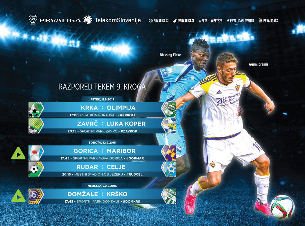 Po reprezentančnem premoru bodo znova zaživele prvoligaške zelenice. 9. krog se začenja že v petek z obračunoma na Portovalu in v Zavrču, medtem ko bo osrednja pozornost tokrat namenjena sobotnemu derbiju v Novi Gorici, kjer gostuje Maribor. Derbi začelja bo potekal v Velenju, edina nedeljska tekma pa bo tista med Domžalami in Krškim.
