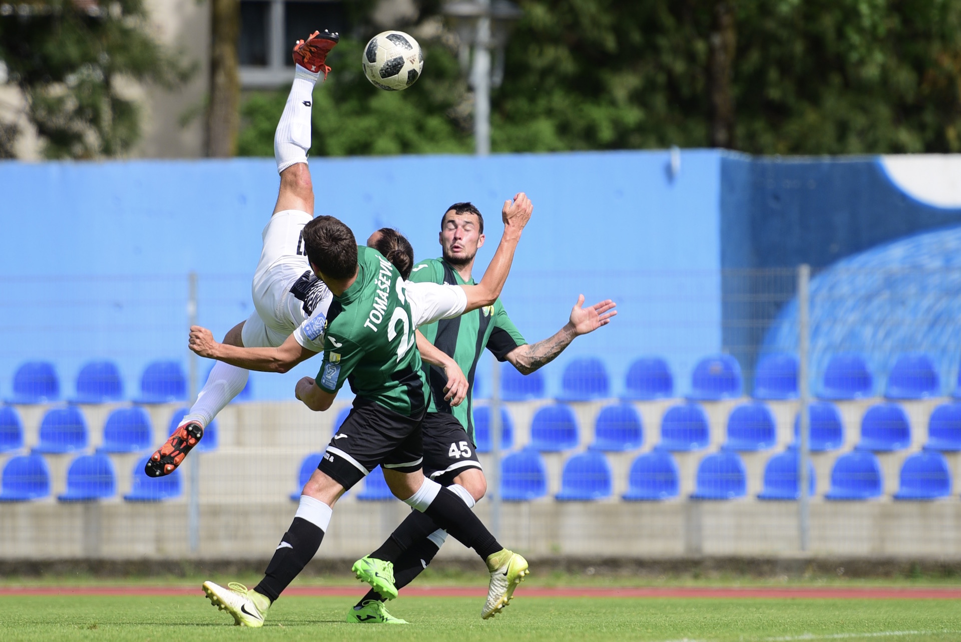 * Strelci: 1:0 Gerc (8.), 2:0 Vodeb (20.), 3:0 santos (29.), 3:1 Tučić (41.), 3:2 Radić (45.).