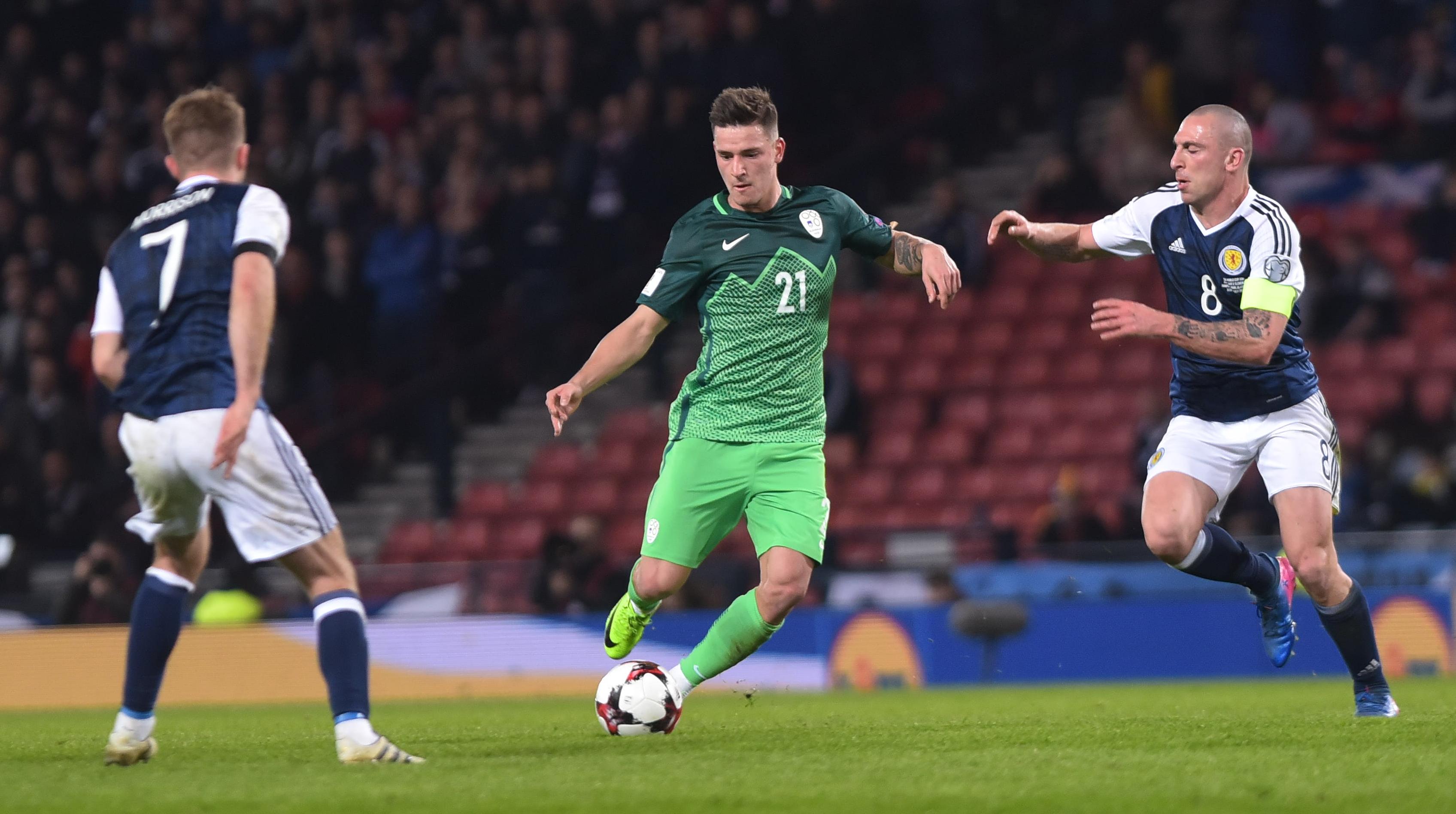 Toda ta postava je imela v prvem polčasu kar nekaj sreče, da ni prejela zadetka. Škoti so predvsem po levi strani prihajali do tistih podaj v sredino, na katere so pred tekmo opozarjali v slovenskem taboru. Nanizali so kar nekaj lepih priložnosti.