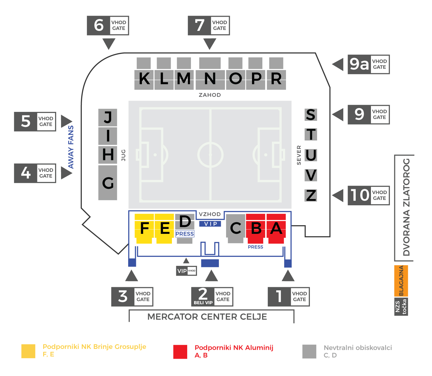 Nevtralni obiskovalci: Tribuna Vzhod, na sektorju C