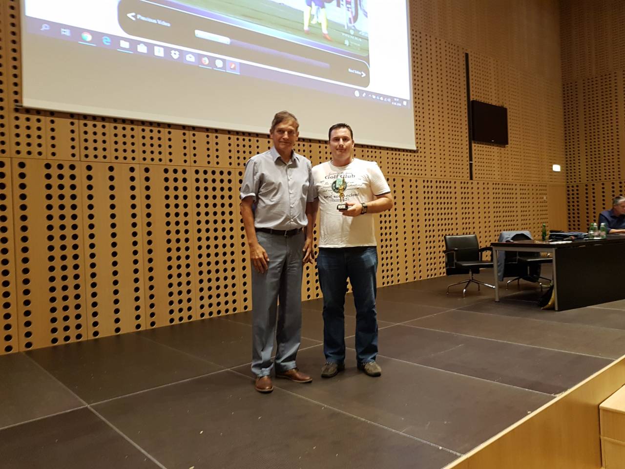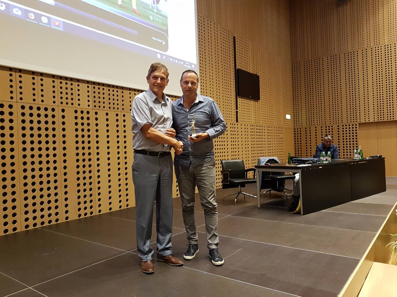 Ob koncu je predsednik ZNSS podelil še zlati zastavici nekdanjima FIFA pomočnikoma Marku Stančinu, ki je z aktivnim sojenjem sicer prenehal že več let nazaj in Gregorju Rojku, ki je z aktivnim sojenjem prenehal lani.