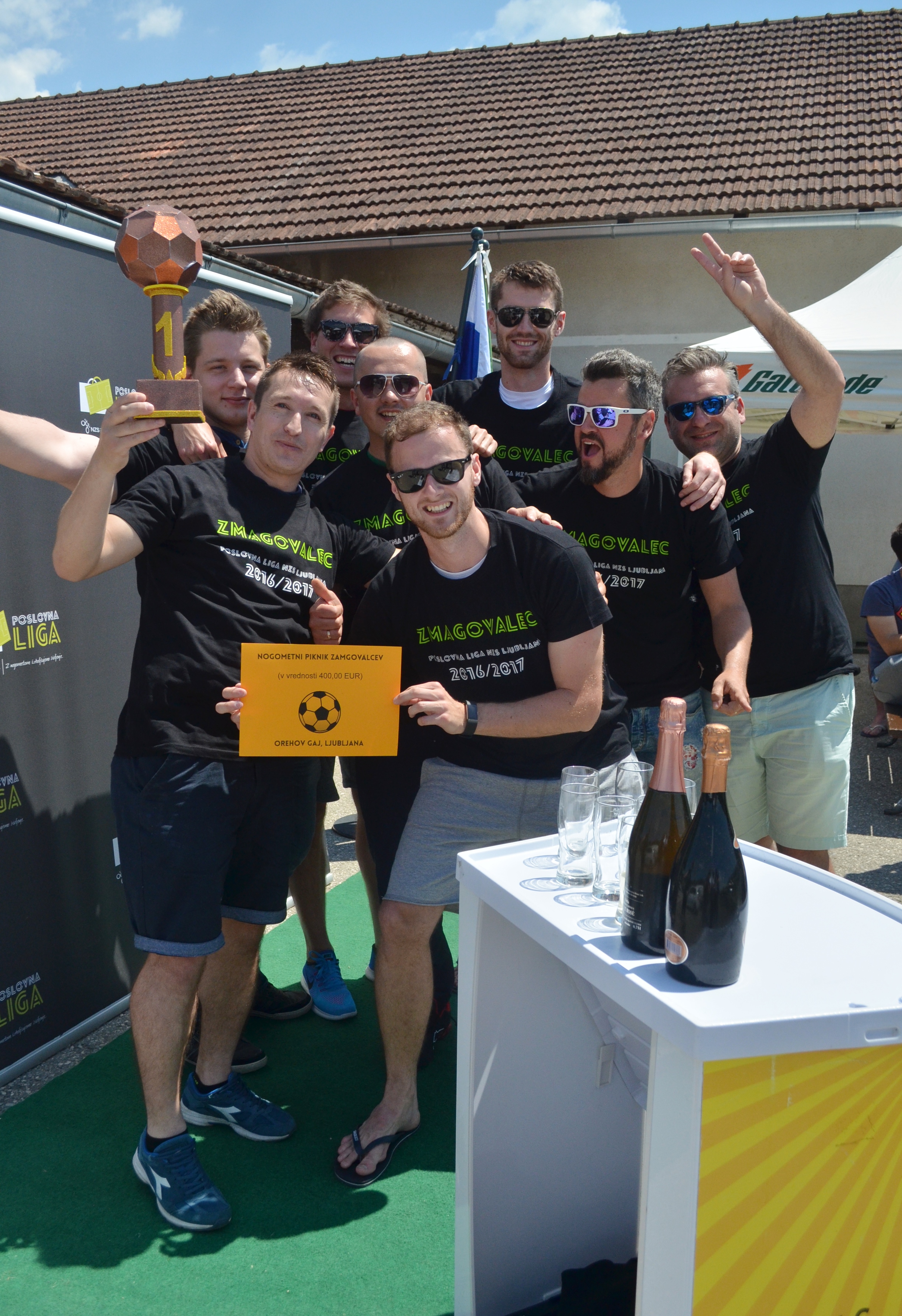 V Poslovni nogometni ligi, ki združuje tri lige in sicer Poslovno ligo NZS Koper, Poslovno ligo NZS Ljubljana in Poslovno ligo NZS Štajerska, smo minuli konec tedna lahko čestitali novima prvakoma. Na nogometnem igrišču NK Dolomiti, v neposredni bližini Ljubljane, se je v soboto odvijal zaključni dogodek ljubljanske poslovne lige, v kateri je letos sodelovalo 10 moštev. Končnega zmagoslavja so se veselili v taboru podjetja Marmor Hotavlje, ki je slavil pred Ekonomsko fakulteto Univerze v Ljubljani in ŠD Skupine Helios. V podjetju iz Hotavelj so v zrak dvignili pokal, unikat, ki je bil delo učenk in učencev z Osnovne šole Domžale.