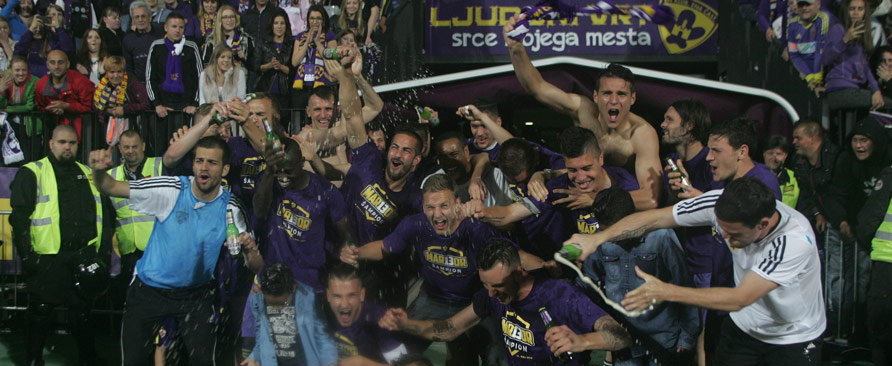 Nogometaši Maribora so v 34. krogu Prve lige Telekom Slovenije premagali Domžale z 1:0 (0:0) in tako predčasno osvojili svoj 13. naslov državnega prvaka.